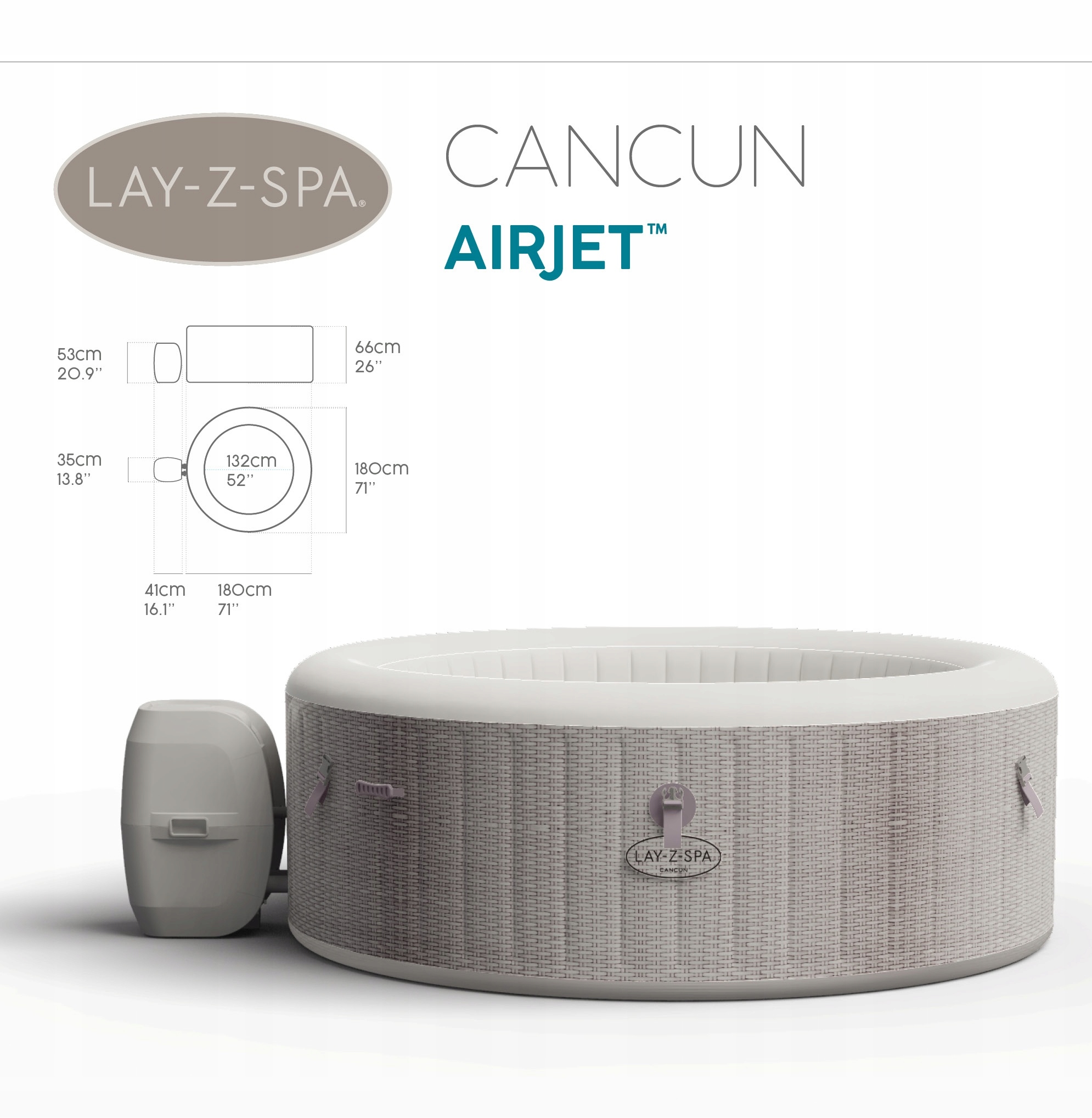 Lay-Z-Spa Cancun AirJetTM призначений для 2-4 осіб. Він забезпечує комфортний простір для відпочинку, проте для більшого комфорту рекомендується максимум 3 дорослих.
