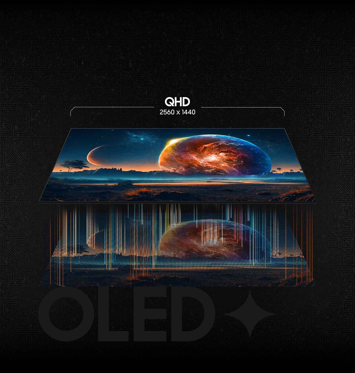Samsung OLED забезпечує чудову яскравість і широкий діапазон кольорів у кожній сцені. Завдяки роздільній здатності QHD, яка забезпечує в 1,7 раза більшу щільність пікселів, ніж Full HD, зображення неймовірно чітке та деталізоване.