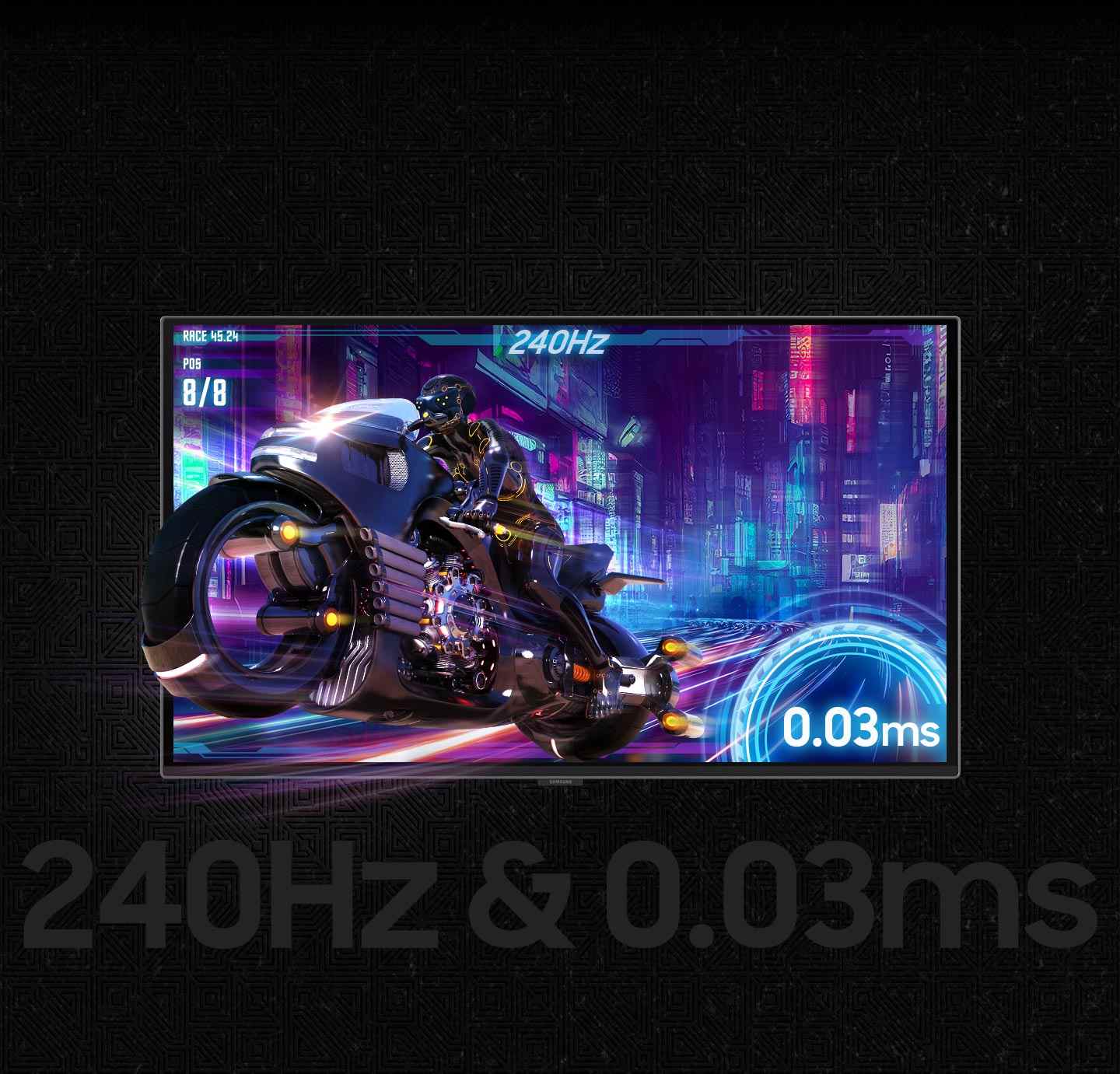 Ухиляйтеся, контролюйте та атакуйте швидше конкурентів. Технологія OLED забезпечує майже миттєвий час відгуку 0,03 мс (GtG). Під'єднання HDMI 2.1 і DisplayPort, а також частота оновлення 240 Гц дадуть змогу вам обігнати конкурентів. Мільсекунди мають значення, коли ви змагаєтеся з найкращими.