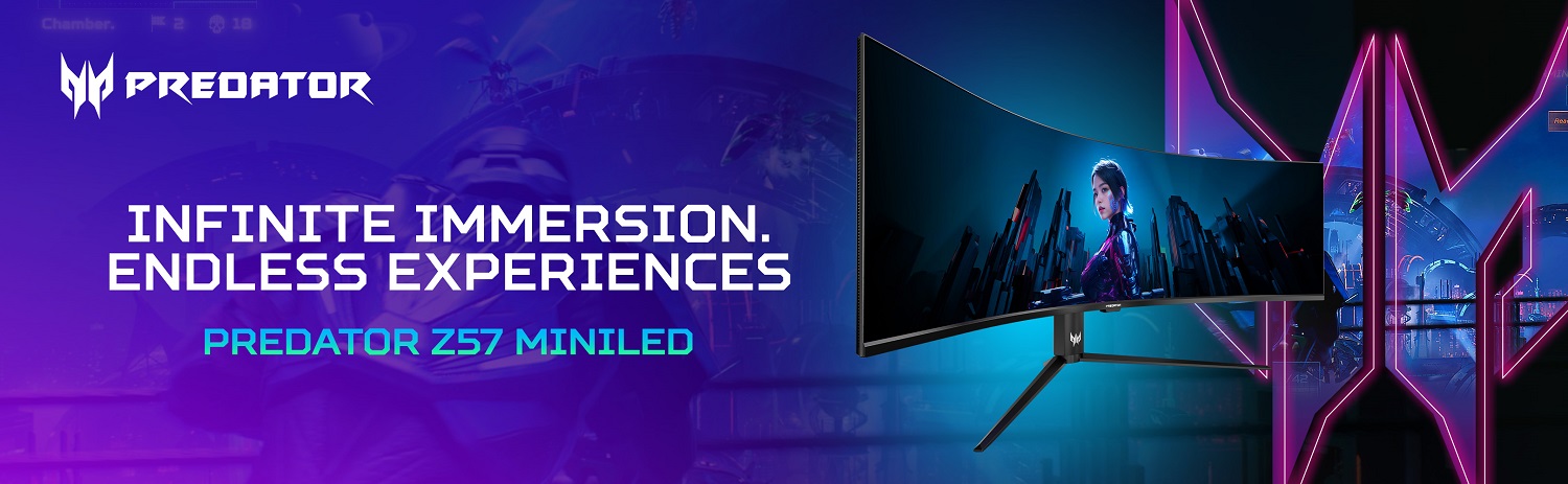 Завдяки VESA DisplayHDRTM 1000 і 98% колірній гамі DCI-P3 Predator Z57 забезпечує такі яскраві кольори, що вони змагаються з реальністю. Відчуйте блиск будь-якого освітлення, від неонових вогнів футуристичних вулиць до динамічного цифрового горизонту.