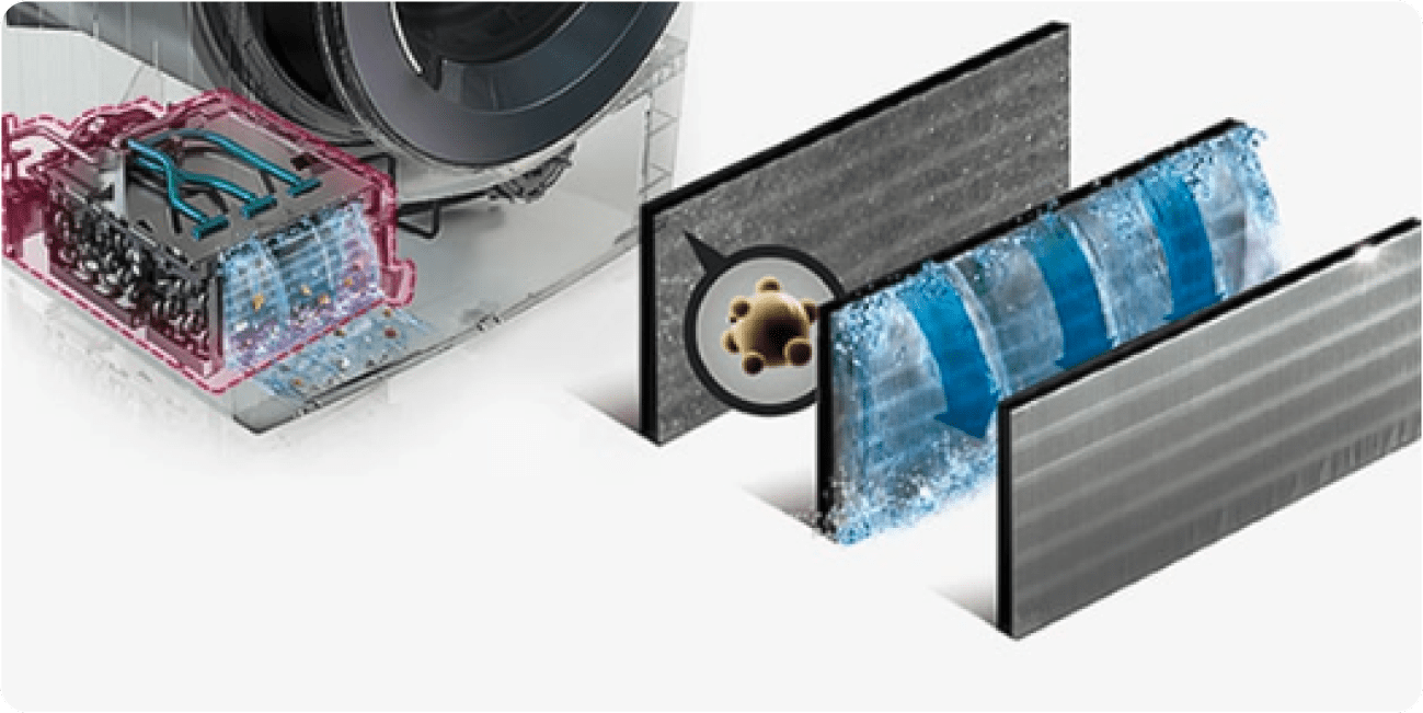 *Програма гігієни пральної машини, протестована Intertek, зменшує кількість бактерій (S. aureus, P. aeruginosa та K. pneumoniae) при тестовому завантаженні бавовняних тканин об’ємом 3,6 кг.