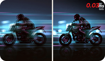 Час відгуку 0,03 мс (GtG), мінімізація ореолів та чіткіша візуалізація об'єктів забезпечують плавніше зображення