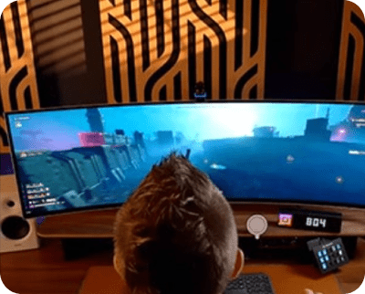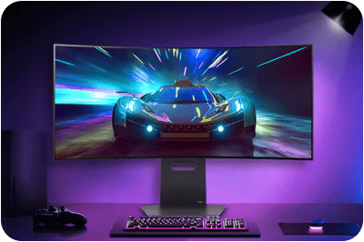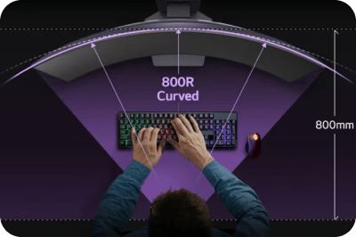 Насолоджуйтесь грою на яскравому OLED-екрані 800R завдяки величезному 45-дюймовому дисплею.