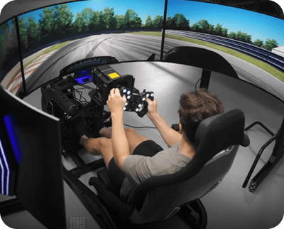 Створіть гоночний симулятор із трьома 45-дюймовими ігровими моніторами LG UltraGear™ OLED.