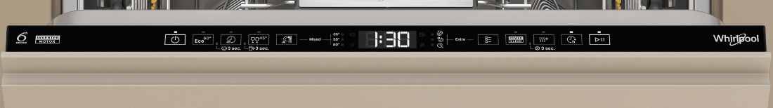 Посудомийні машини Whirlpool можуть похвалитися сучасним та елегантним дизайном, який доповнить будь-яку кухню. Їхнє покриття з нержавіючої сталі надає їм розкішного вигляду, водночас забезпечуючи довговічність та стійкість до щоденного використання. Елегантні хромовані ручки та непомітно інтегрована панель керування підкреслюють їхній сучасний характер, а ретельно розроблений інтер'єр забезпечує максимальну ефективність та зручність використання.