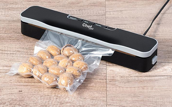 Якщо ви виймете лише одне філе з великої упаковки курячих грудок, інші почнуть висихати та втрачати свою свіжість у холодильнику. Вакуумний пакувальник ChefOne FW-1015 запобіжить цьому! Їжа, упакована з його допомогою, ефективно захищена від бактерій, цвілі, висихання та втрати смаку, тож ви зможете довше насолоджуватися її свіжістю.