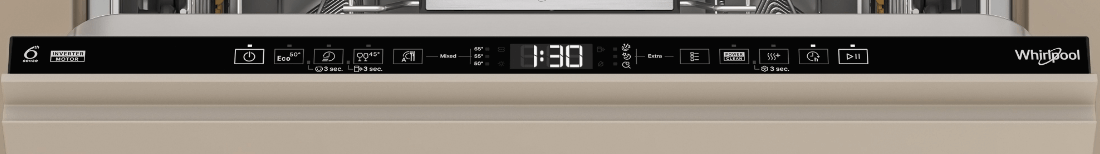Посудомийні машини Whirlpool можуть похвалитися сучасним та елегантним дизайном, який доповнить будь-яку кухню. Їхнє покриття з нержавіючої сталі надає їм розкішного вигляду, водночас забезпечуючи довговічність та стійкість до щоденного використання. Елегантні хромовані ручки та непомітно інтегрована панель керування підкреслюють їхній сучасний характер, а ретельно розроблений інтер'єр забезпечує максимальну ефективність та зручність використання.
