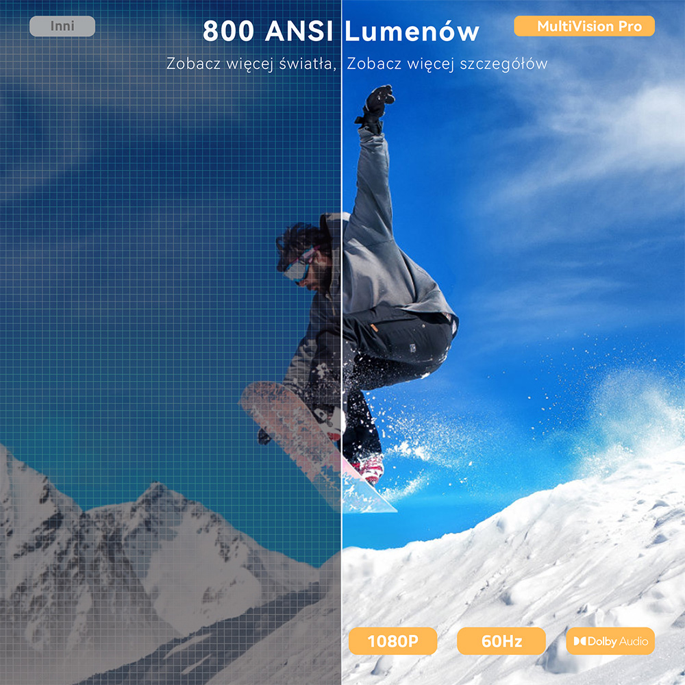 Яскравість 800 ANSI люмен дозволяє проектору створювати яскраве зображення навіть за помірного освітлення, забезпечуючи чіткі деталі та реалістичне враження від перегляду. Зображення залишається чітким та чітким, незалежно від навколишнього середовища.