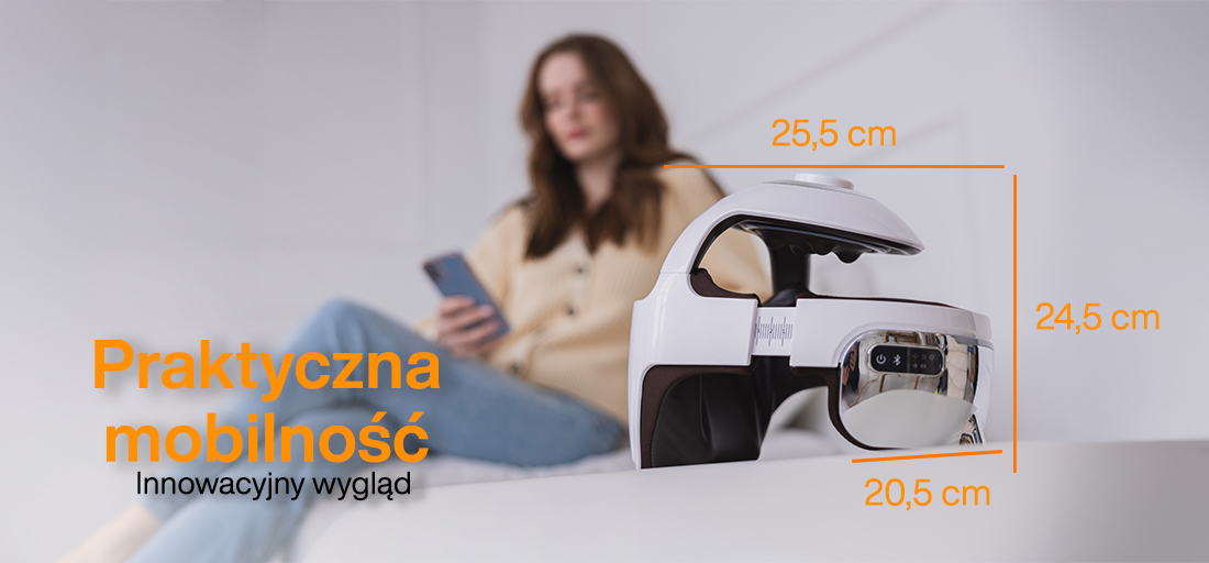 Сучасний масажер для голови з футуристичним дизайном . Виконаний в елегантному білому та темно-коричневому кольорах, цей масажер, схожий на шолом, є втіленням інновацій у сфері велнесу. Його передові функції, такі як ніжний масаж нервових точок та шкіри голови , гарантують, що кожен сеанс буде не тільки ефективним, але й безпечним для вашого волосся. Прозорі тонкі скла масажера забезпечують додаткові відчуття навколо очей, зменшуючи втому та напругу, зменшуючи набряклість та заспокоюючи напругу очей після довгого робочого дня. Це один з найпопулярніших пристроїв для людей із хронічними проблемами з пазухами носа, періодичними мігренями та безсонням, оскільки його вдосконалена система масажу голови зменшує нервову напругу та покращує кровообіг.