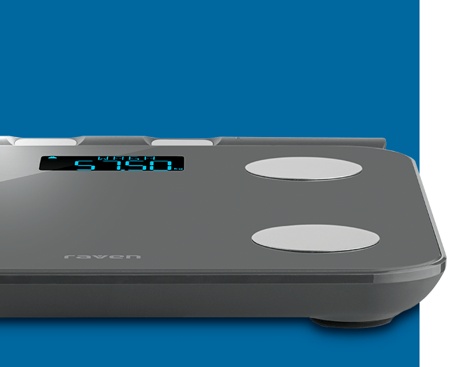 Окрім вашої поточної ваги, ваги для ванної кімнати Raven EW012BT з аналізом складу тіла показують відсоток жиру, води, м'язів та кісток у вашому тілі, а також оцінюють вашу добову потребу в енергії, виміряну в кілокалоріях, враховуючи біологічні дані, такі як вік, стать та маса тіла.