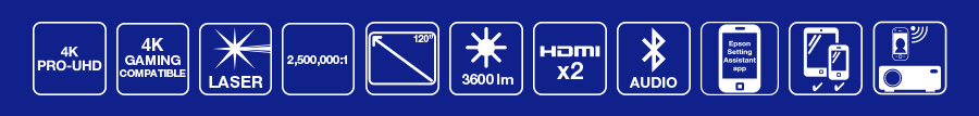 Завдяки високому коефіцієнту контрастності 2 500 000:1 та високій яскравості 3600 люменів, цей проектор 4K PRO-UHD 1 HDR10 забезпечує глибокі чорні кольори та винятково реалістичне зображення. Завдяки технології 3LCD від Epson ви побачите кольори втричі яскравіші, ніж у одночіпових DLP-проекторах . 2 Налаштування спрощується за допомогою Epson Setting Assistant, який автоматично вирівнює зображення.