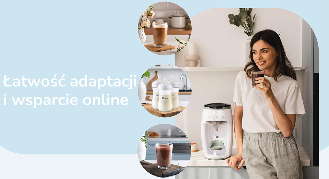 Завдяки регульованій підставці для пляшечок та прецизійній лійці, MilkMaker легко адаптується до різних типів пляшечок, що робить його ідеальним для сімей на різних етапах розвитку дитини. Онлайн-підтримка через веб-сайт допомагає швидко налаштувати пропорції напою, забезпечуючи ідеальне змішування щоразу. Крім того, інтуїтивно зрозуміле керування дозволяє легко керувати функціями пристрою, що ще більше підвищує комфорт користувача. Онлайн-посібники та технічна підтримка гарантують, що кожен батько почуватиметься впевнено та компетентно, використовуючи цей пристрій.